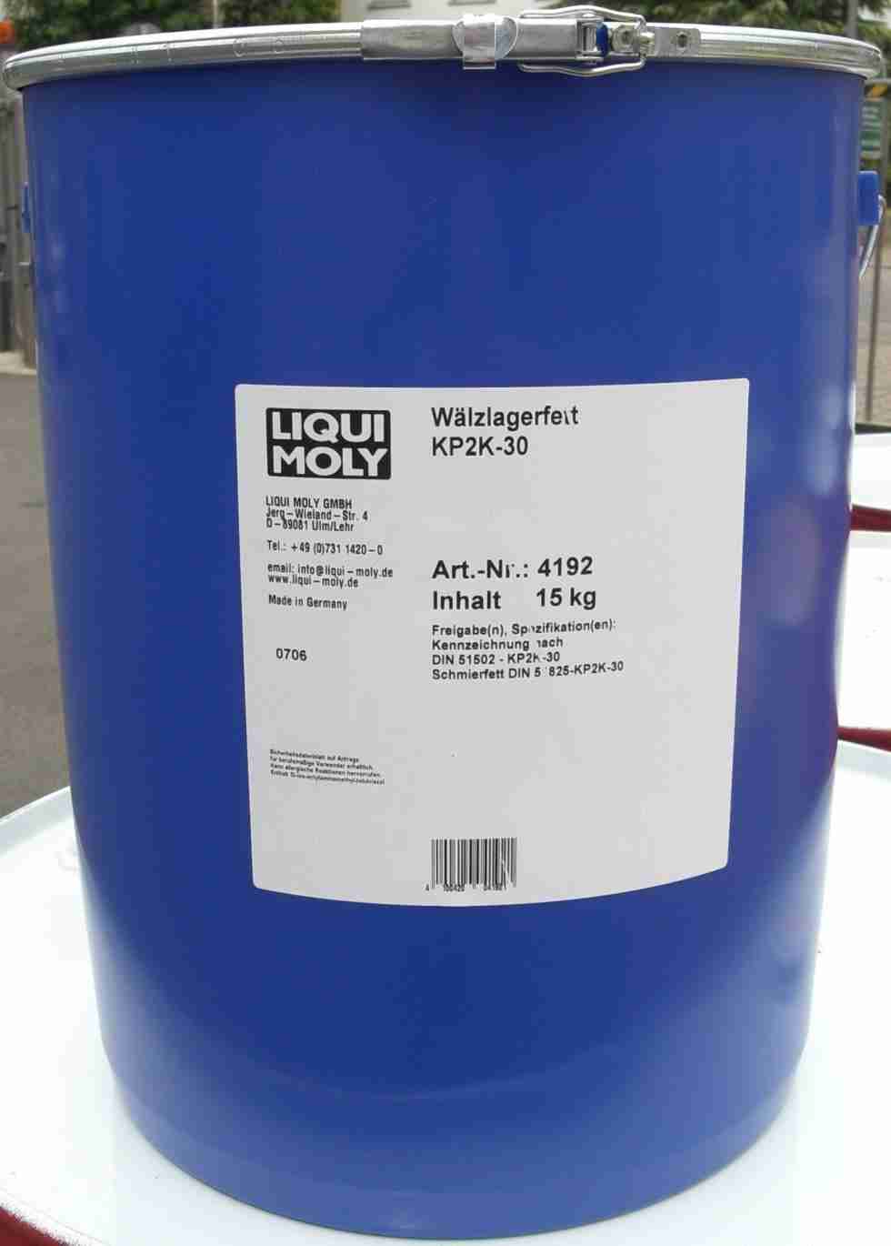 德国力魔Liqui Moly 滚动轴承润滑脂Walzlagerfett KP2K-30是一种高质量复合锂钙基脂。用于高温极限载荷的普通轴承和滚动轴承的润滑。该润滑脂不仅具有抗磨损抗氧化添加剂,还含有极压添加剂,使之具有高性能润滑性。此产品在高达20%水分情况下任然具有优秀的润滑性。温度范围:-30 °C 至+130 °C。标签符合DIN 51502: KP2K-30 润滑脂DIN 51825-KP2K-30